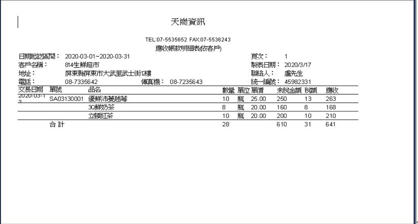 應收帳款明細表-中一刀
